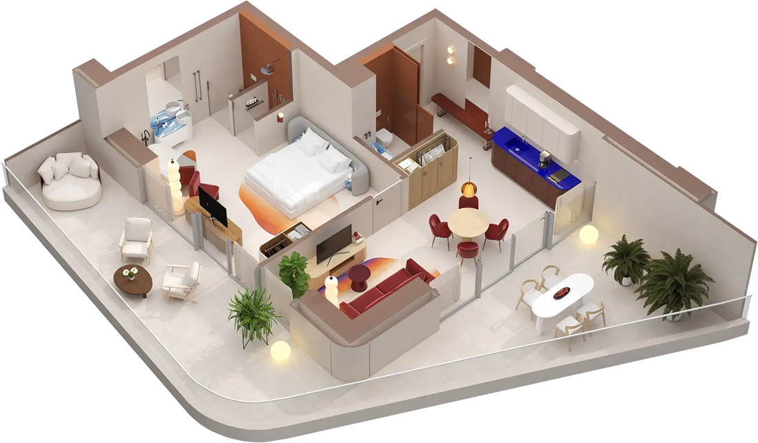 Private beach, gym, SPA, cafes, restaurants, indoor and outdoor pools, conference and meeting rooms, concierge, 24-hour security